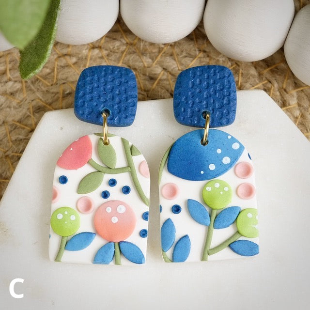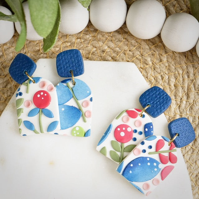 Lightweight and durable earrings created by hand in small batches. Made with polymer clay.