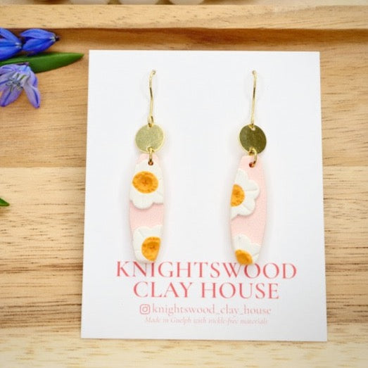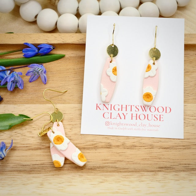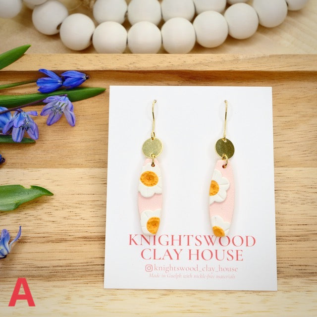 Lightweight and durable dangle earrings created by hand in small batches. Made with polymer clay and brass components.