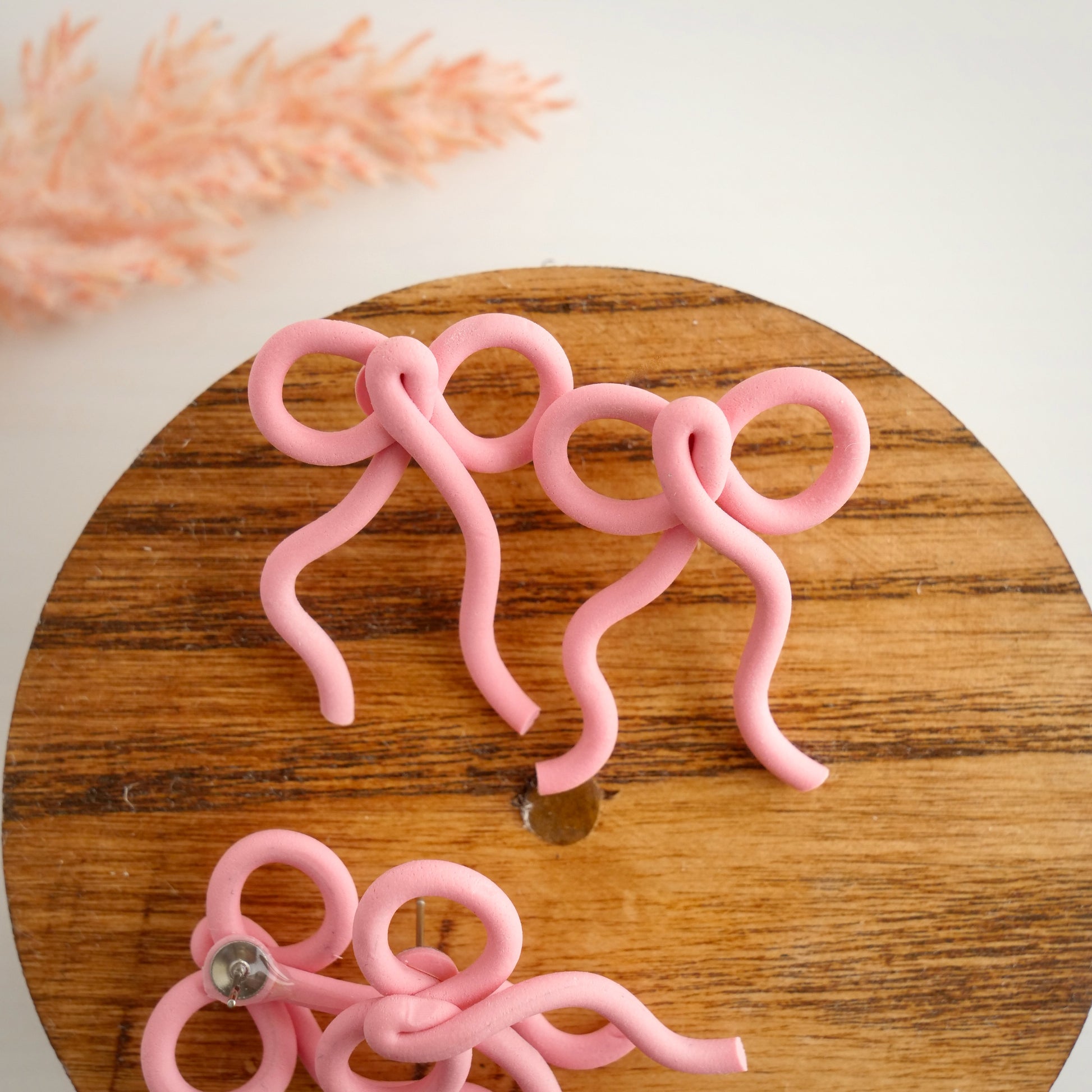 Skinny Loop Bow Studs in Guava Pink