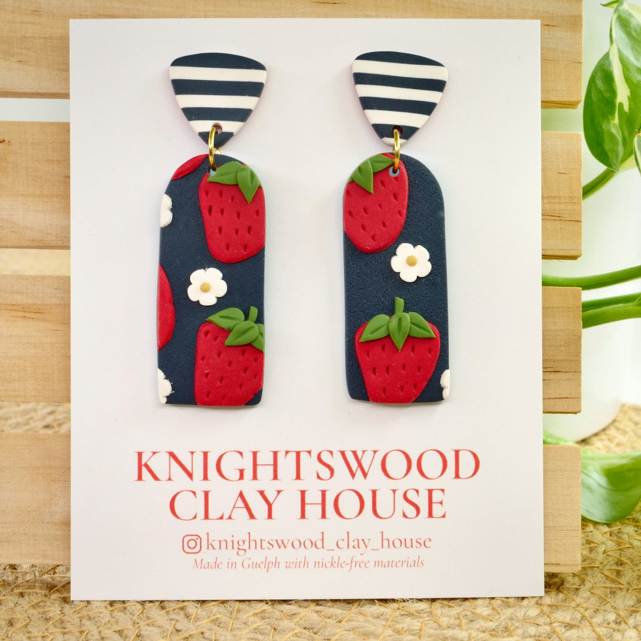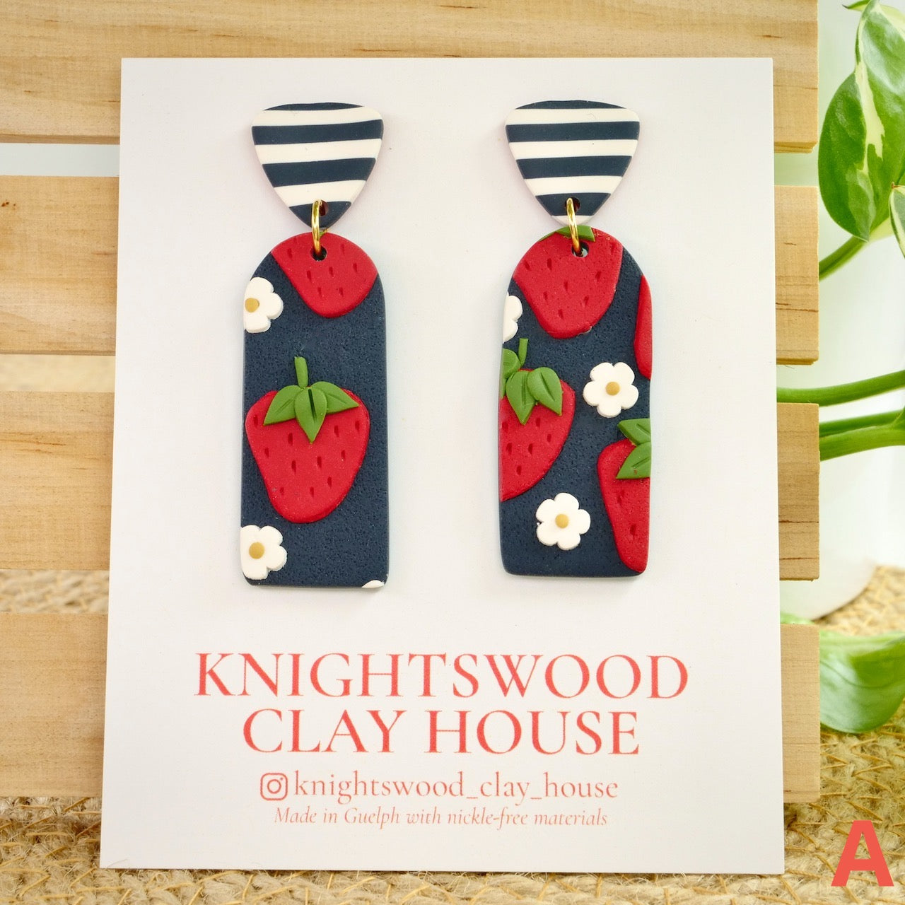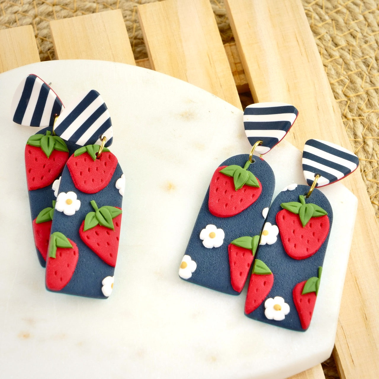 Lightweight and durable dangle earrings created by hand in small batches. Made with polymer clay, brass and stainless steel posts.