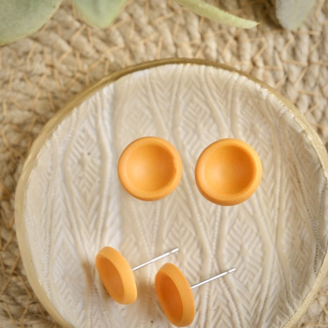 Lightweight and durable earrings created by hand in small batches. Made with polymer clay, plant-based resin, and stainless steel posts.