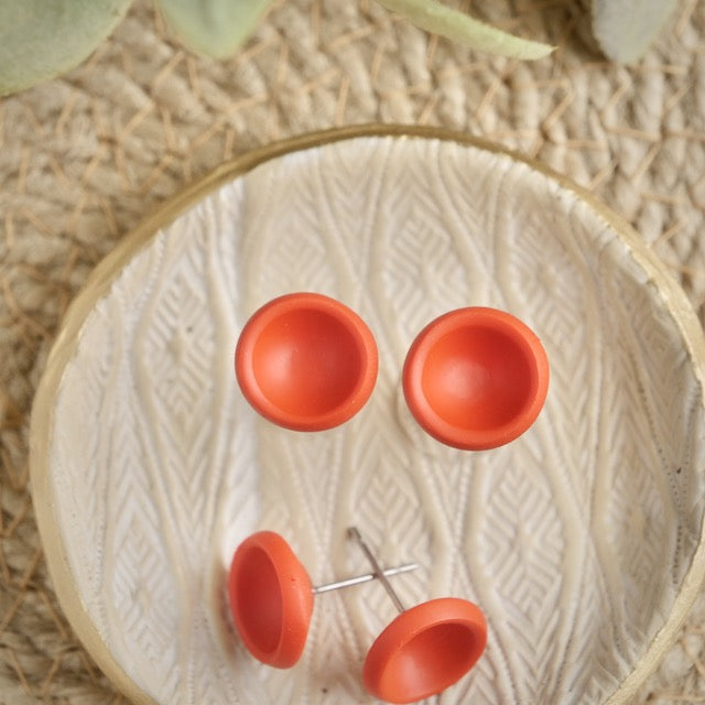 PHOTO NOTE: These studs are a shade of red that doesn't translate well for photos. The colour is a slightly deeper but bright red.