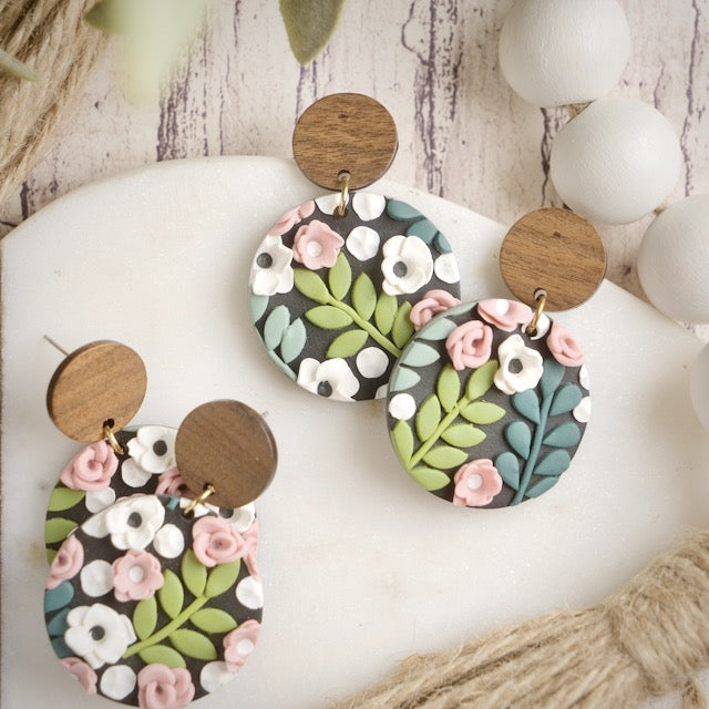 Carden Circle Dangles in Floral with Wood Studs