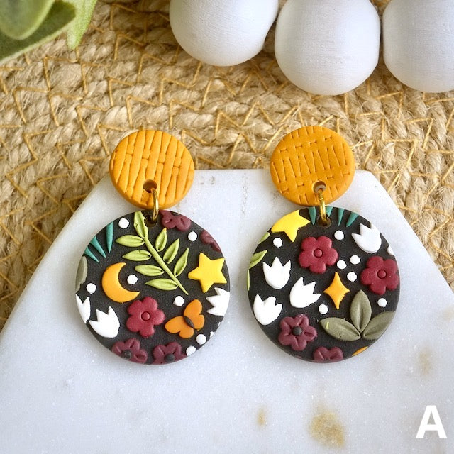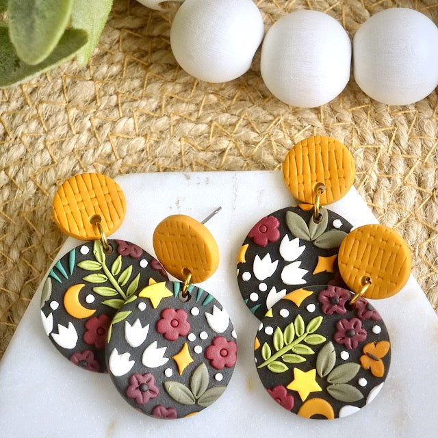 Carden Circle Dangles in Midnight Floral