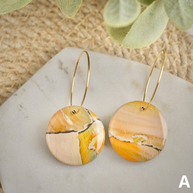 Lightweight and durable earrings created by hand in small batches. Made with polymer clay and plant-based resin..