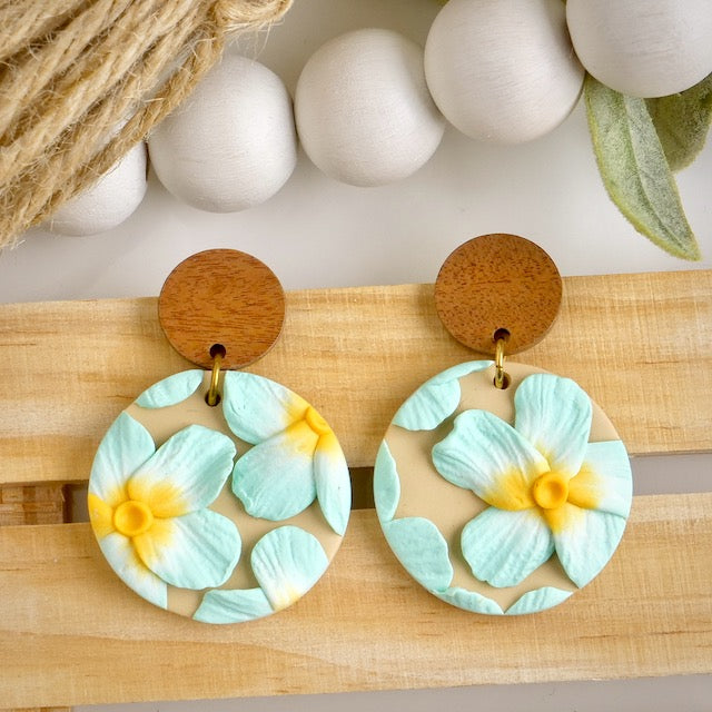 Lightweight and durable earrings created by hand in small batches. Made with polymer clay, wood, brass, plant-based resin, and stainless steel posts.