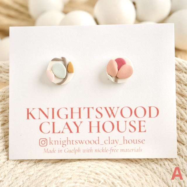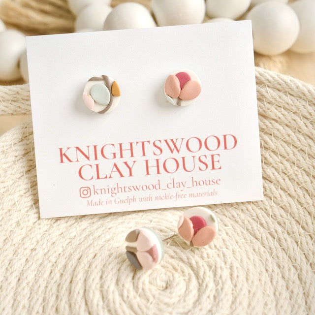 Lightweight and durable earrings created by hand in small batches. Made with polymer clay and stainless steel pushback posts.