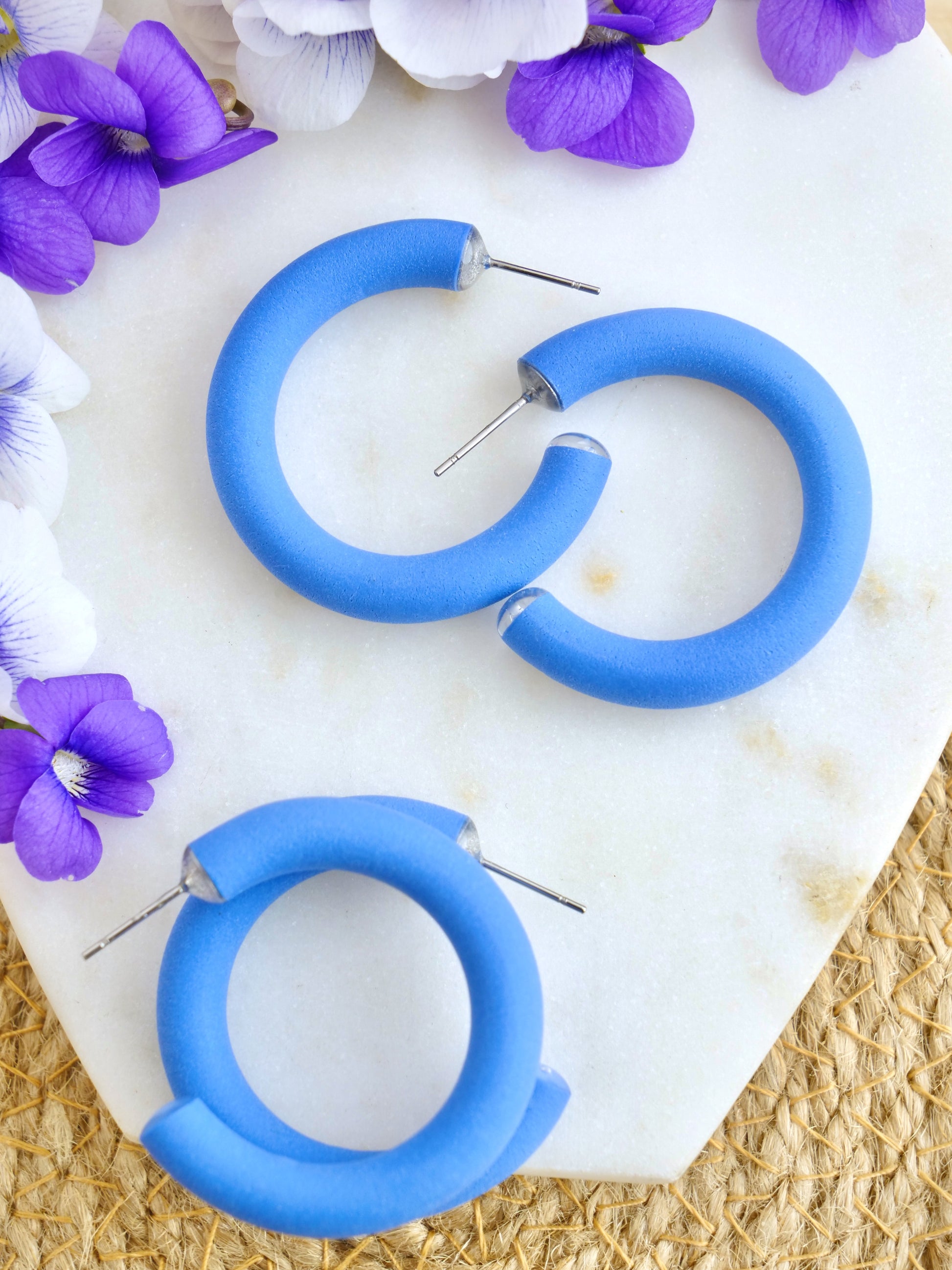 Unbelievably lightweight and durable clay hoop earrings created by hand in small batches.