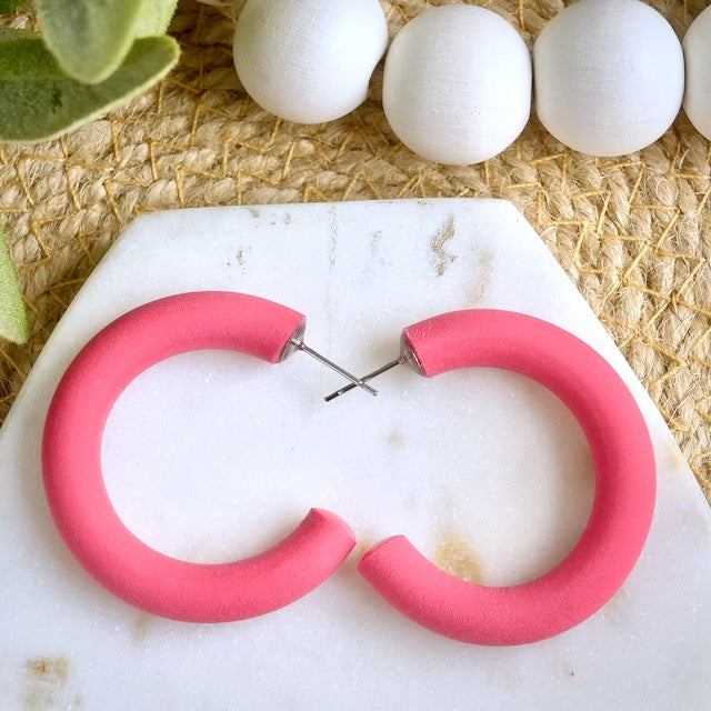 Clay Hoops in Dark Coral