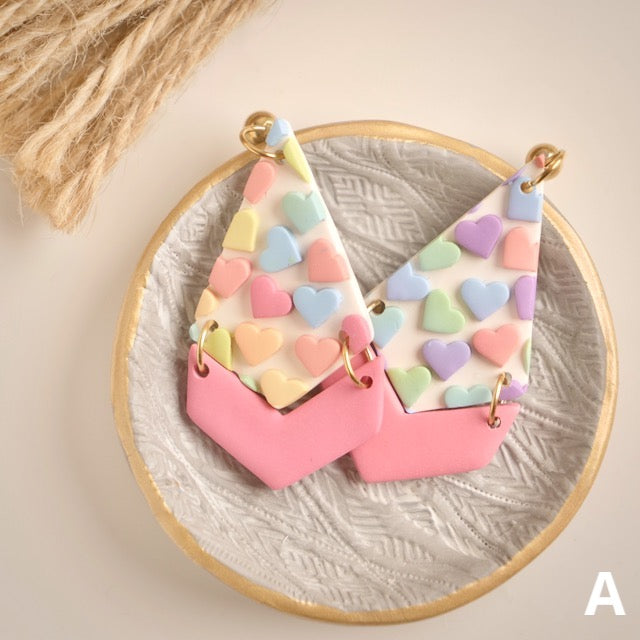 Lightweight and durable earrings created by hand in small batches. Made with polymer clay, brass, and stainless steel posts.