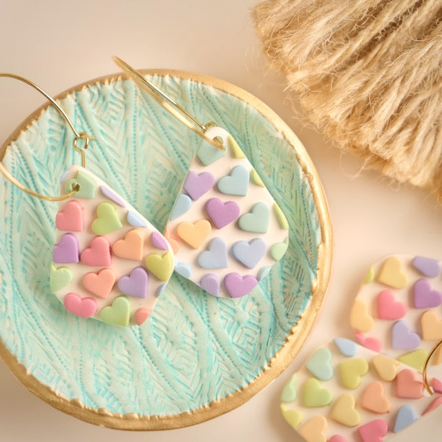 Lightweight and durable earrings created by hand in small batches. Made with polymer clay.