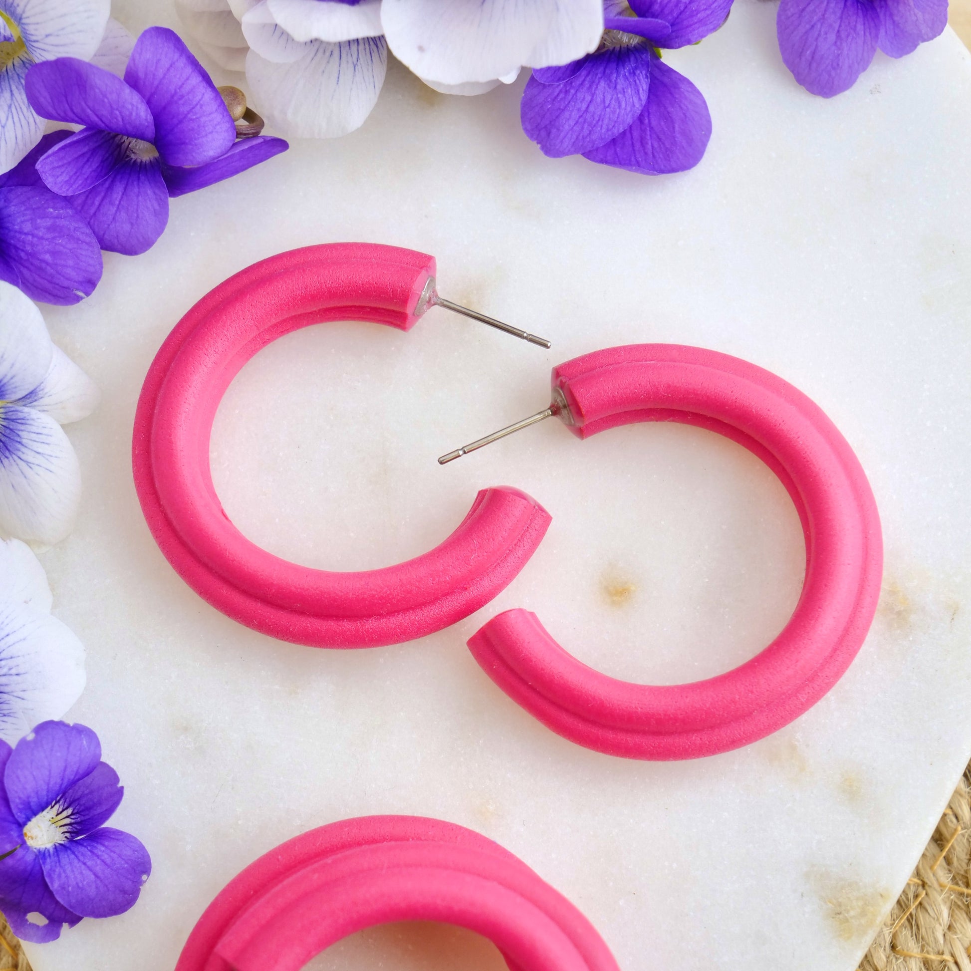 Unbelievably lightweight and durable clay hoop earrings created by hand in small batches.