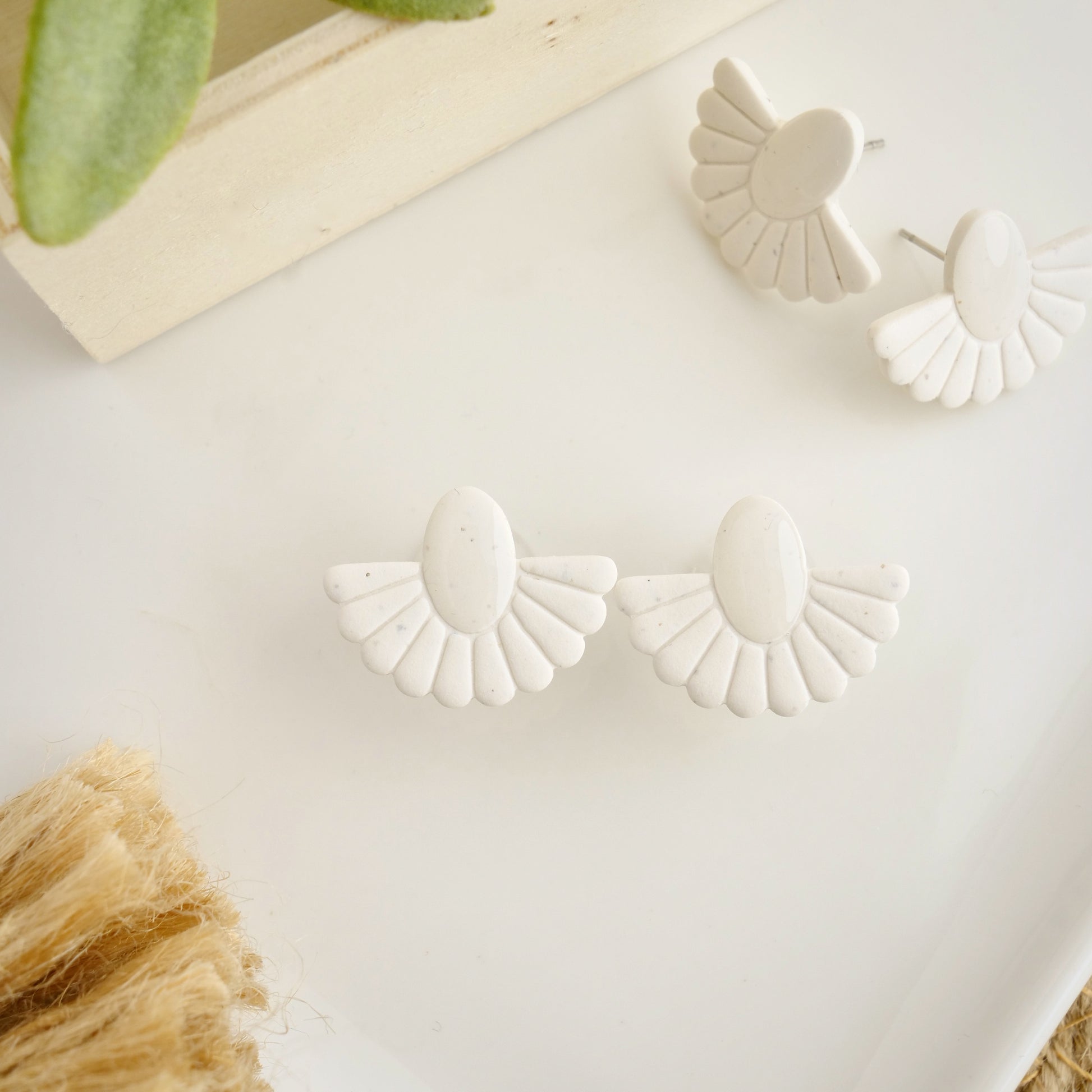 Fan Studs in White Granite