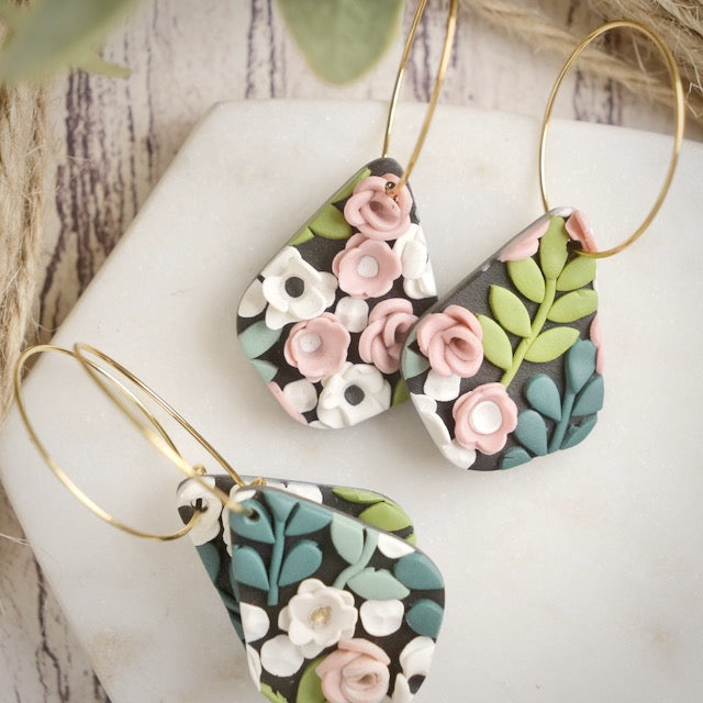 Lightweight and durable earrings created by hand in small batches. Made with polymer clay.