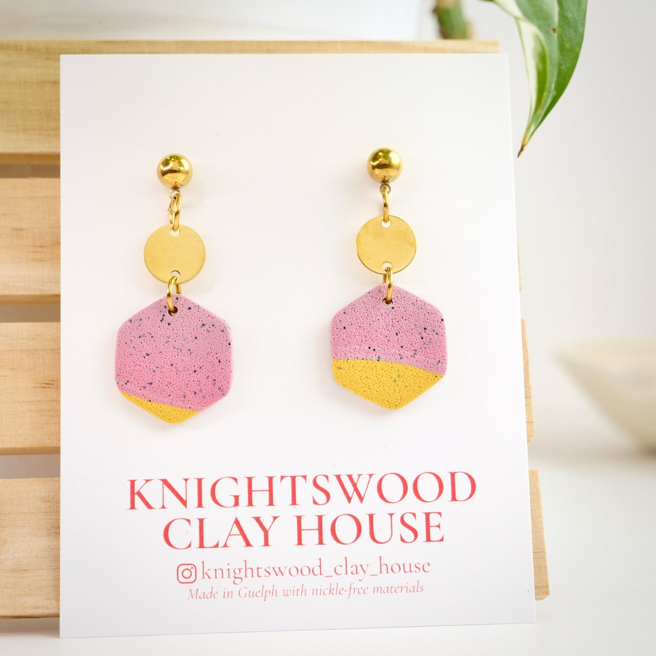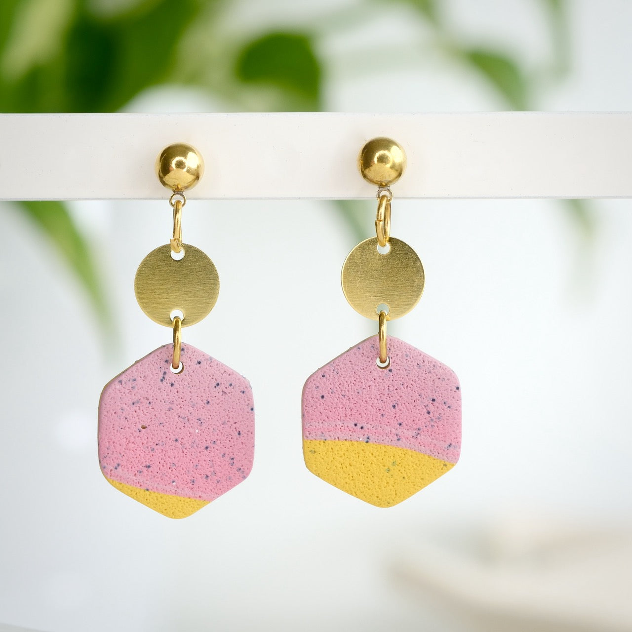 Hepburn Hex Dangles in Pink and Yellow Stone