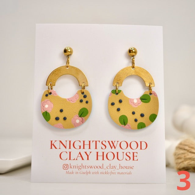 Lightweight and durable dangle earrings created by hand in small batches. Made with polymer clay, brass and stainless steel posts.