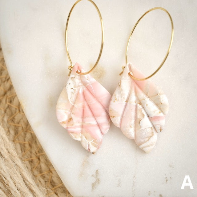 Lightweight and durable dangle earrings created by hand in small batches. Made with polymer clay.