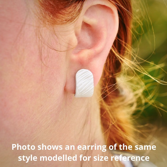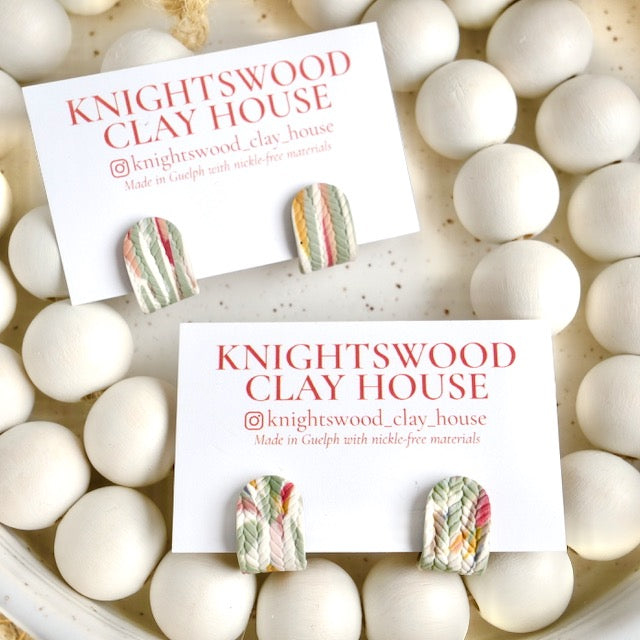 Lightweight and durable stud earrings created by hand in small batches. Made with polymer clay and stainless steel pushback posts.
