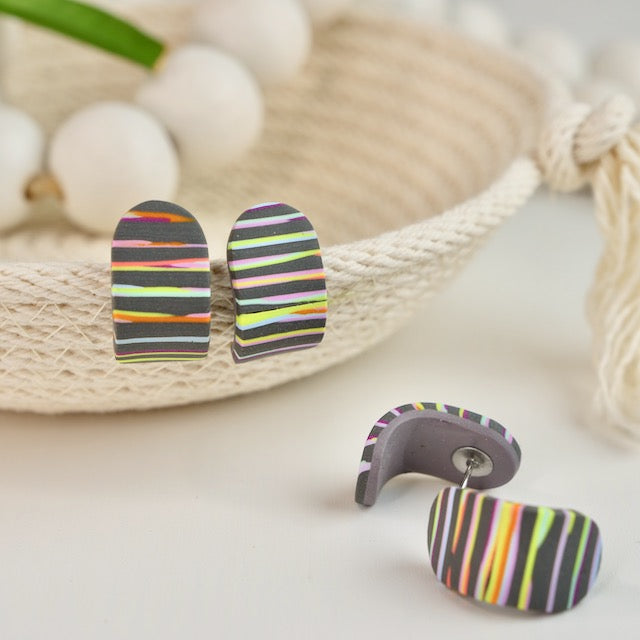 Itty Bitty Wrap Studs in Charcoal Neon Stripe
