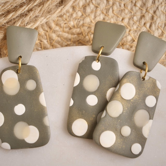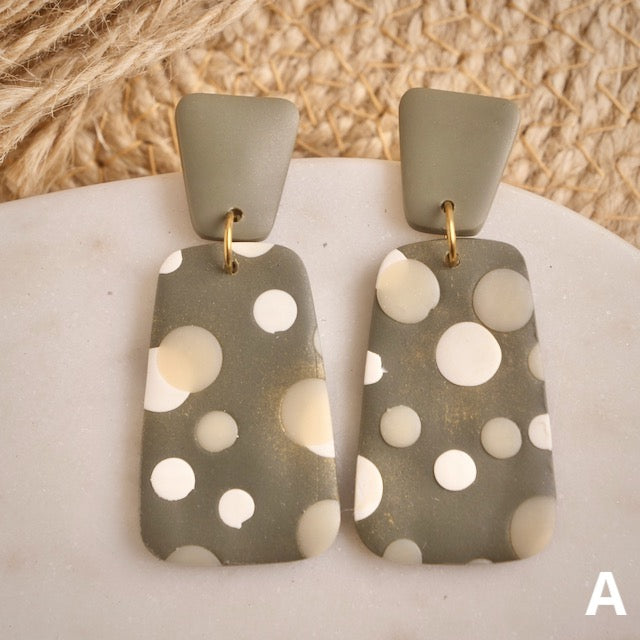 Lightweight and durable earrings created by hand in small batches. Made with polymer clay, brass, and stainless steel posts.