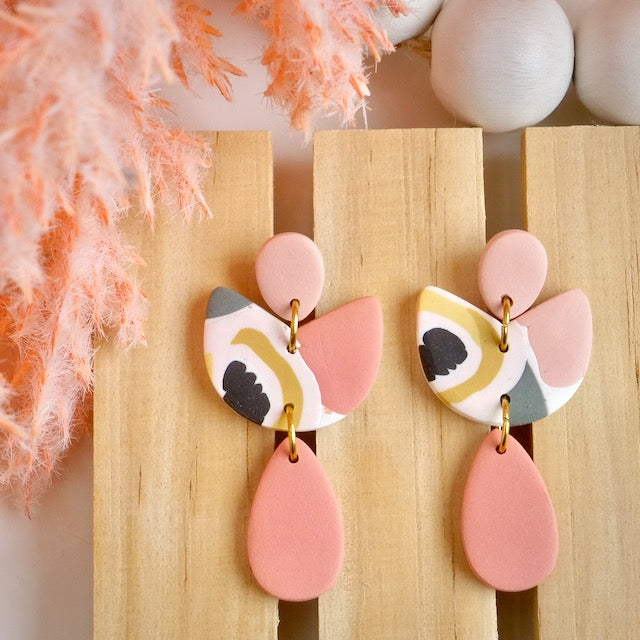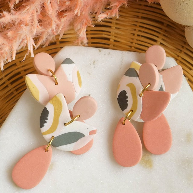 Kipling Dangles in Peachy Pink Abstract