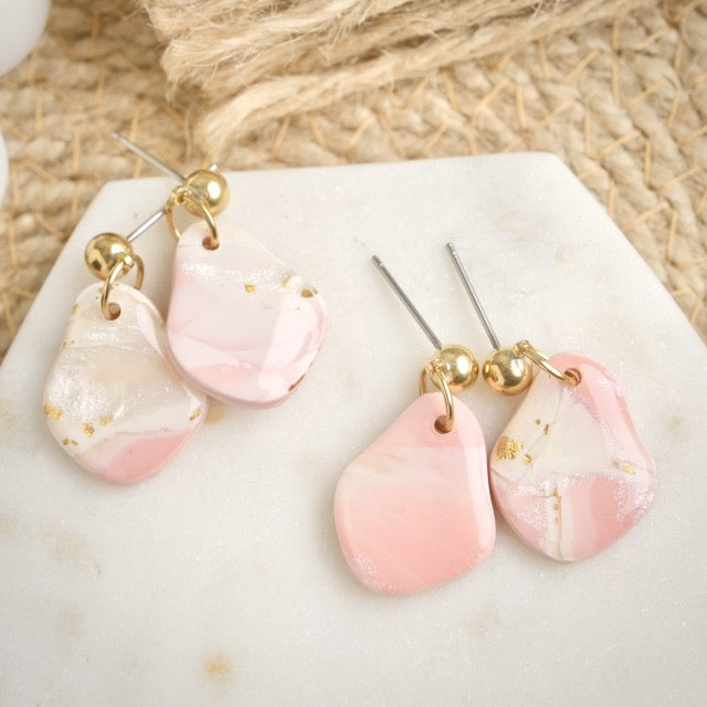 Lightweight and durable earrings created by hand in small batches. Made with polymer clay, brass, plant-based resin, and stainless steel posts.