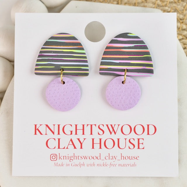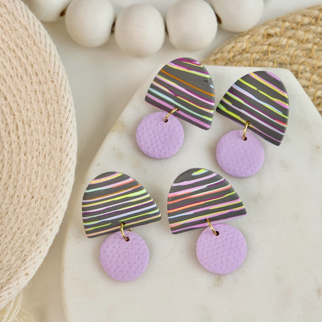 Lightweight and durable earrings created by hand in small batches. Made with polymer clay, brass and stainless steel pushback posts.