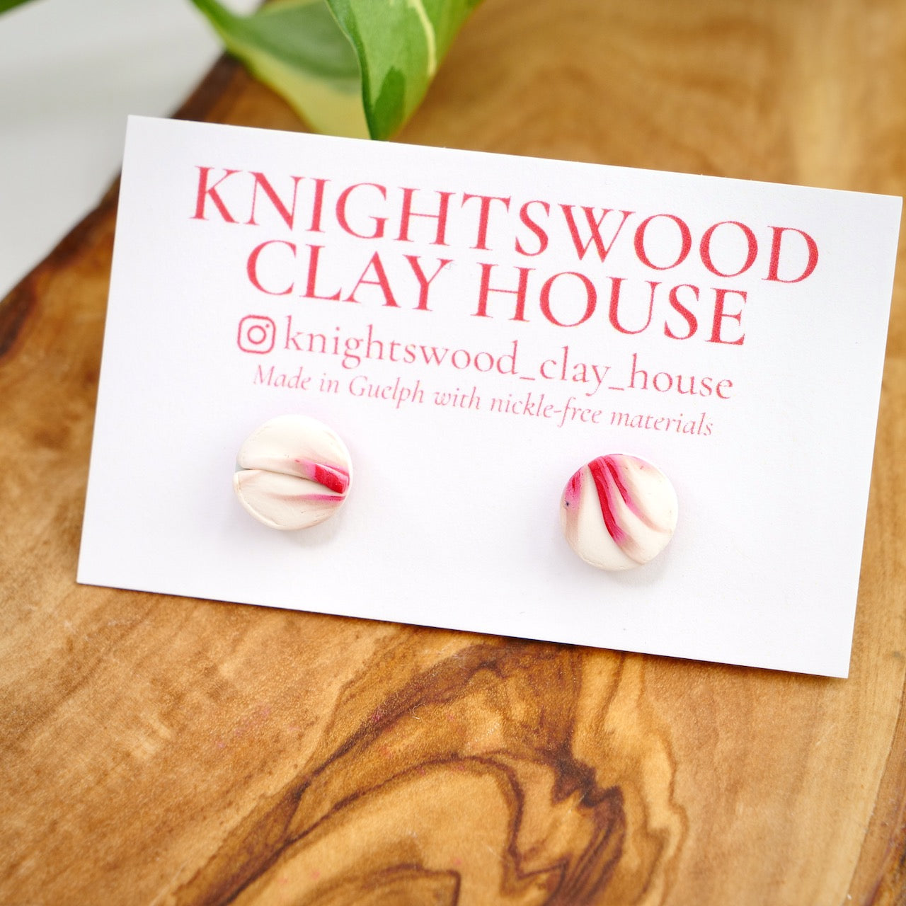 Lightweight and durable stud earrings created by hand in small batches. Made with polymer clay and stainless steel pushback posts.