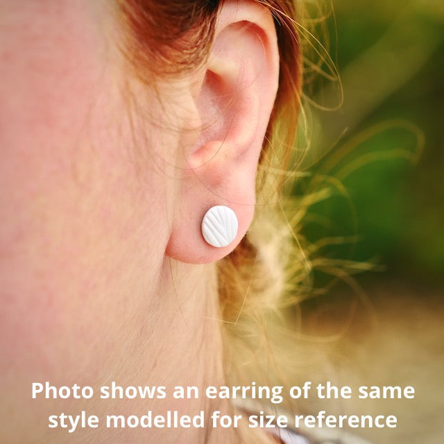 Lightweight and durable stud earrings created by hand in small batches. Made with polymer clay and stainless steel posts.
