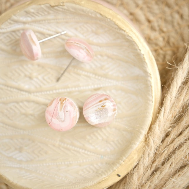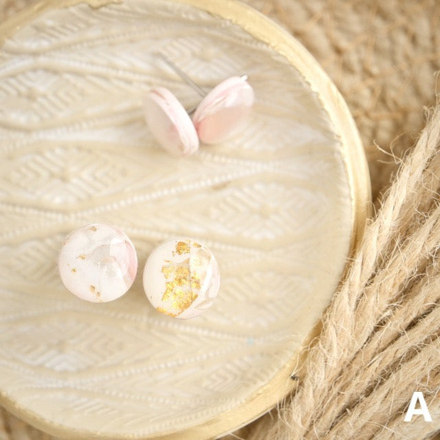 Lightweight and durable stud earrings created by hand in small batches. Made with polymer clay, plant-based resin and stainless steel posts.