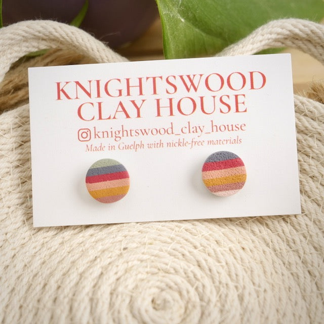 Lightweight and durable earrings created by hand in small batches. Made with polymer clay and stainless steel pushback posts.