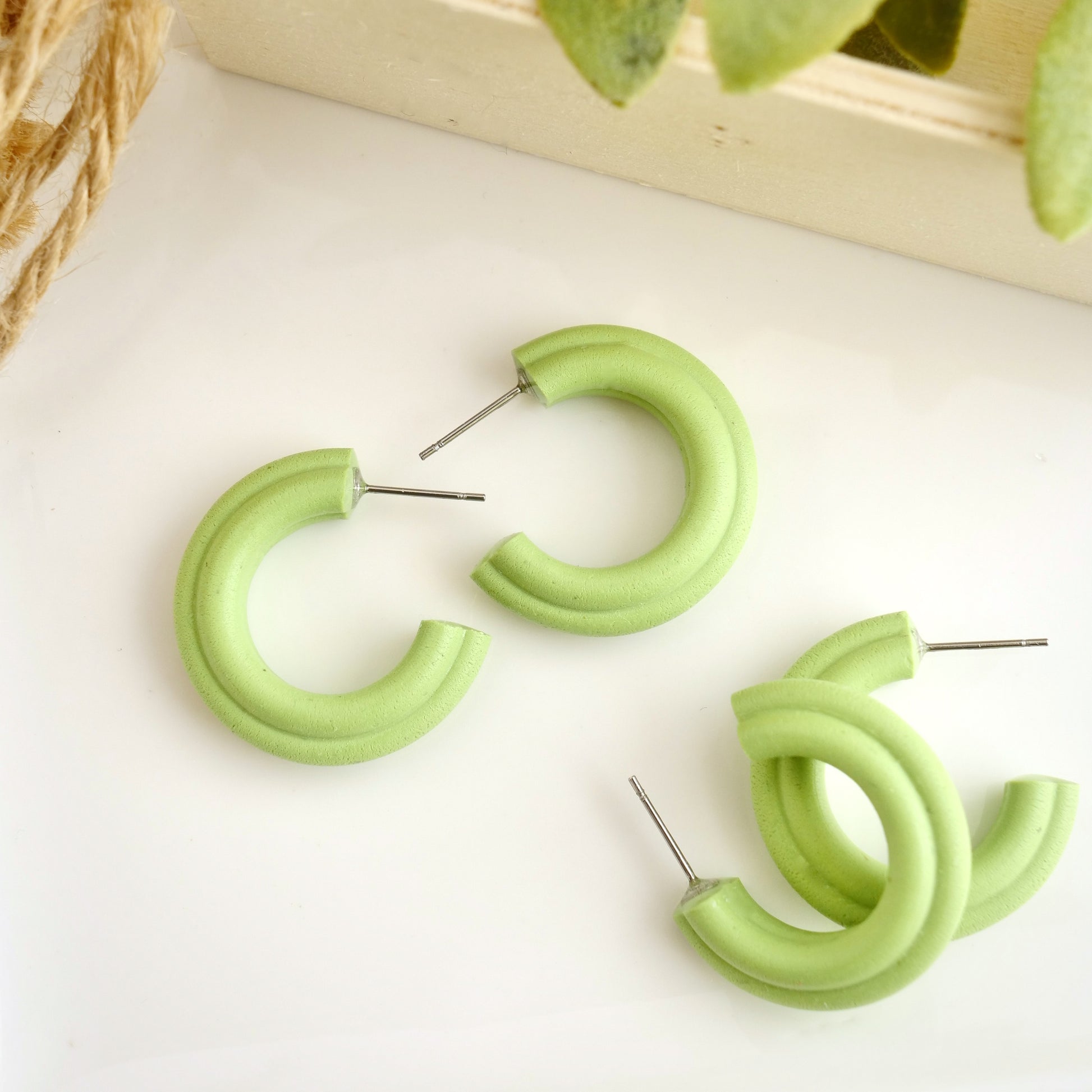 Unbelievably lightweight and durable clay hoop earrings created by hand in small batches.