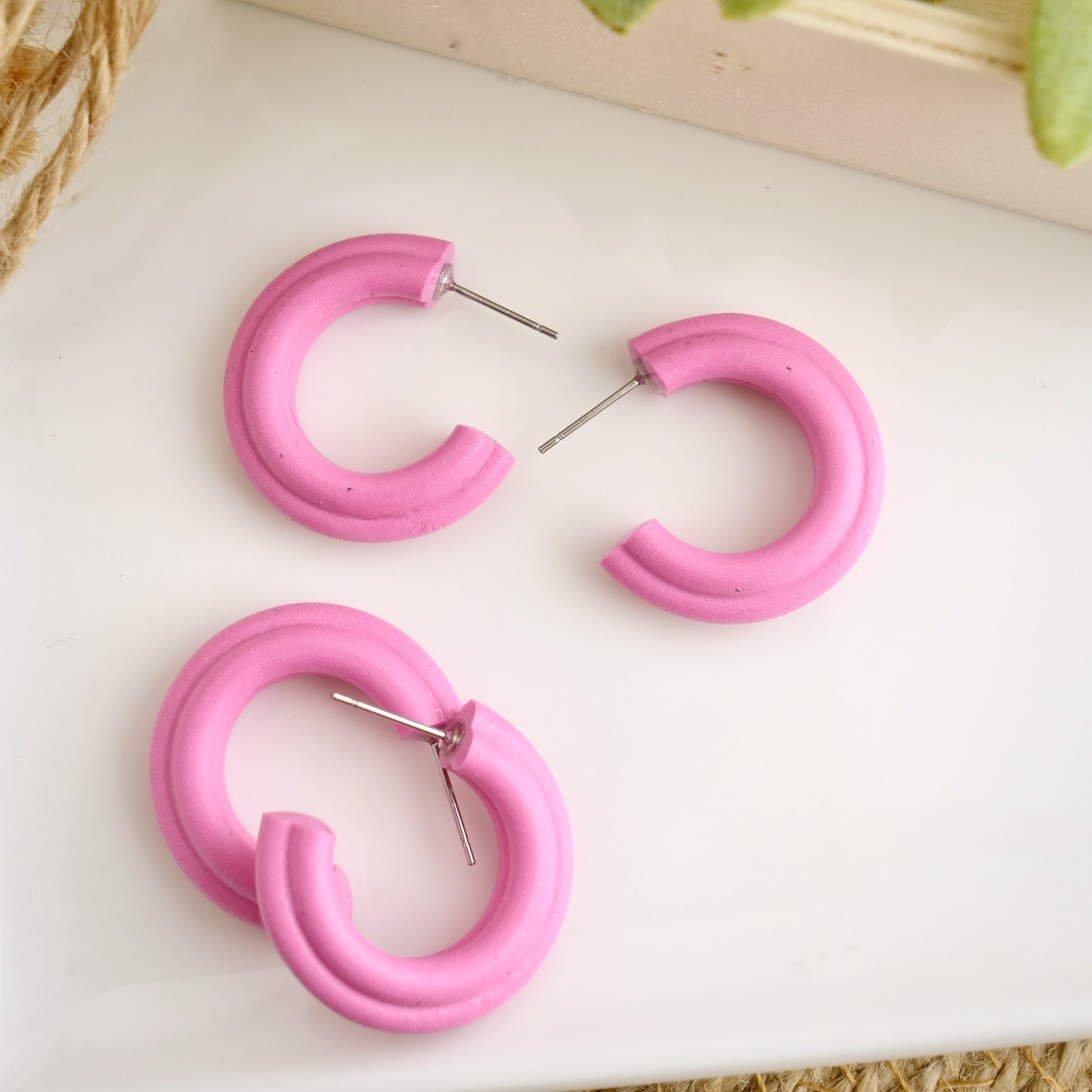 Unbelievably lightweight and durable clay hoop earrings created by hand in small batches.