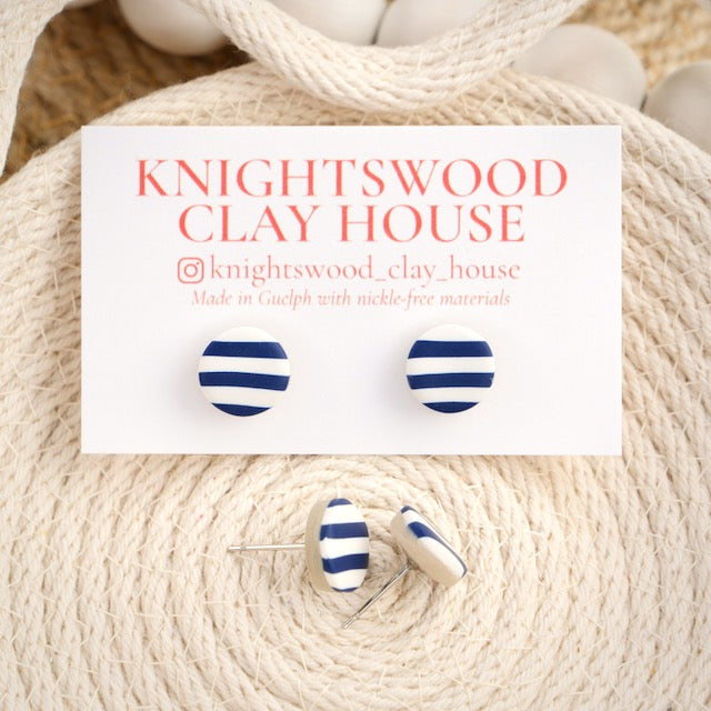 Lightweight and durable stud earrings created by hand in small batches. Made with polymer clay and stainless steel pushback posts.