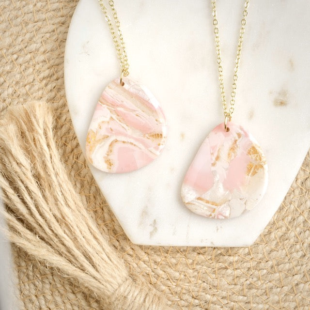 Lightweight and durable necklaces created by hand in small batches. Made with polymer clay and plant-based resin.