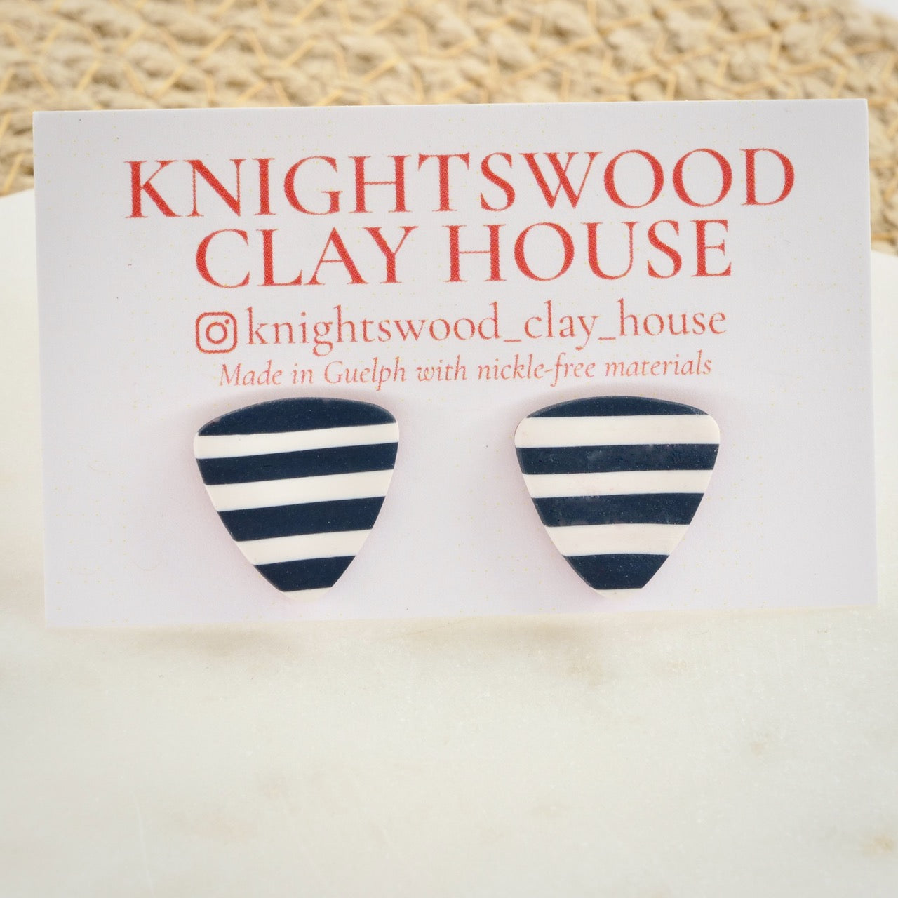 Lightweight and durable stud earrings created by hand in small batches. Made with polymer clay and stainless steel posts.