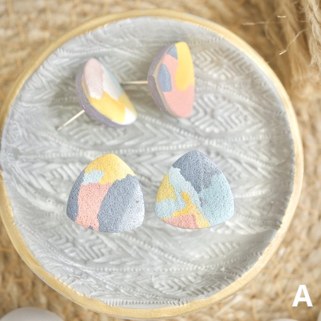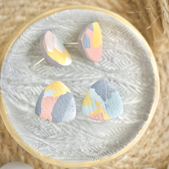Made with polymer clay, brass, plant-based resin, and stainless steel posts.
