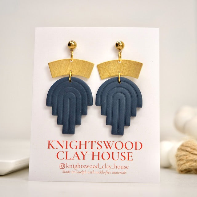 Lightweight and durable dangle earrings created by hand in small batches. Made with polymer clay, brass and stainless steel posts.