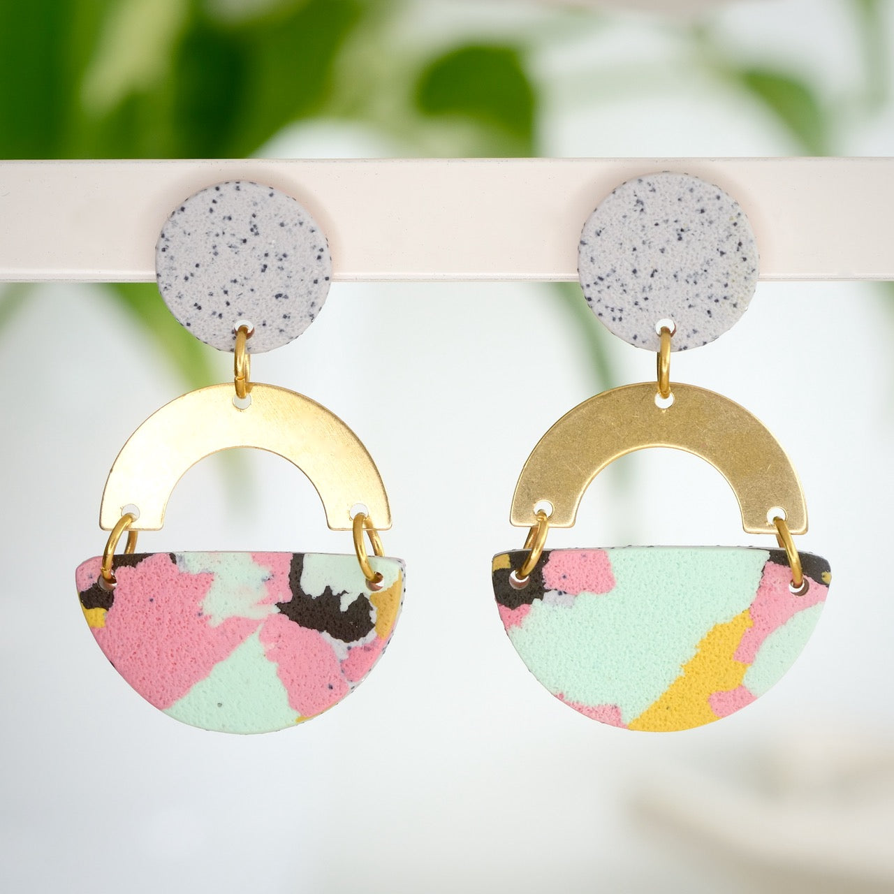 Lightweight and durable earrings created by hand in small batches. Made with polymer clay.