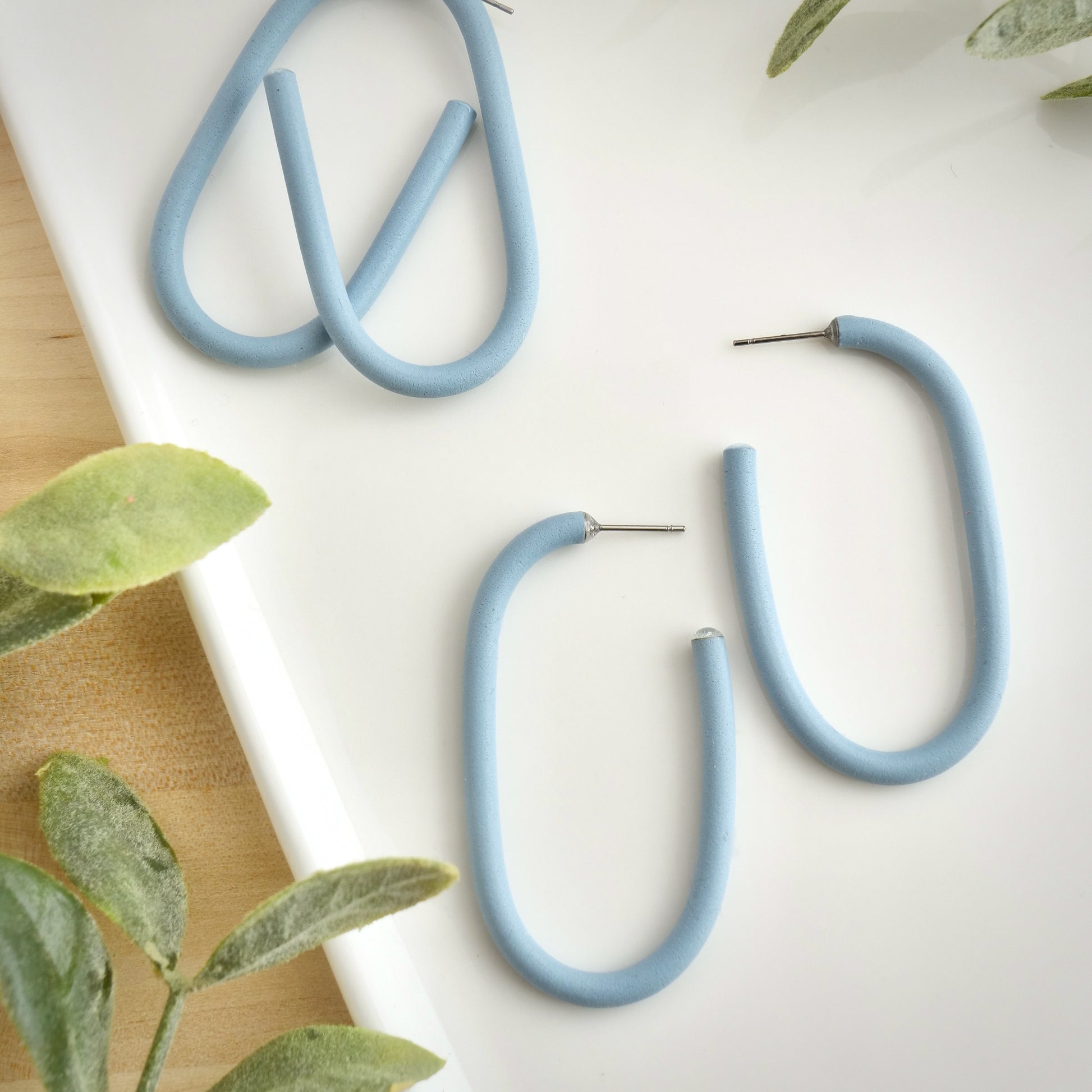Unbelievably lightweight and durable clay hoop earrings created by hand in small batches.