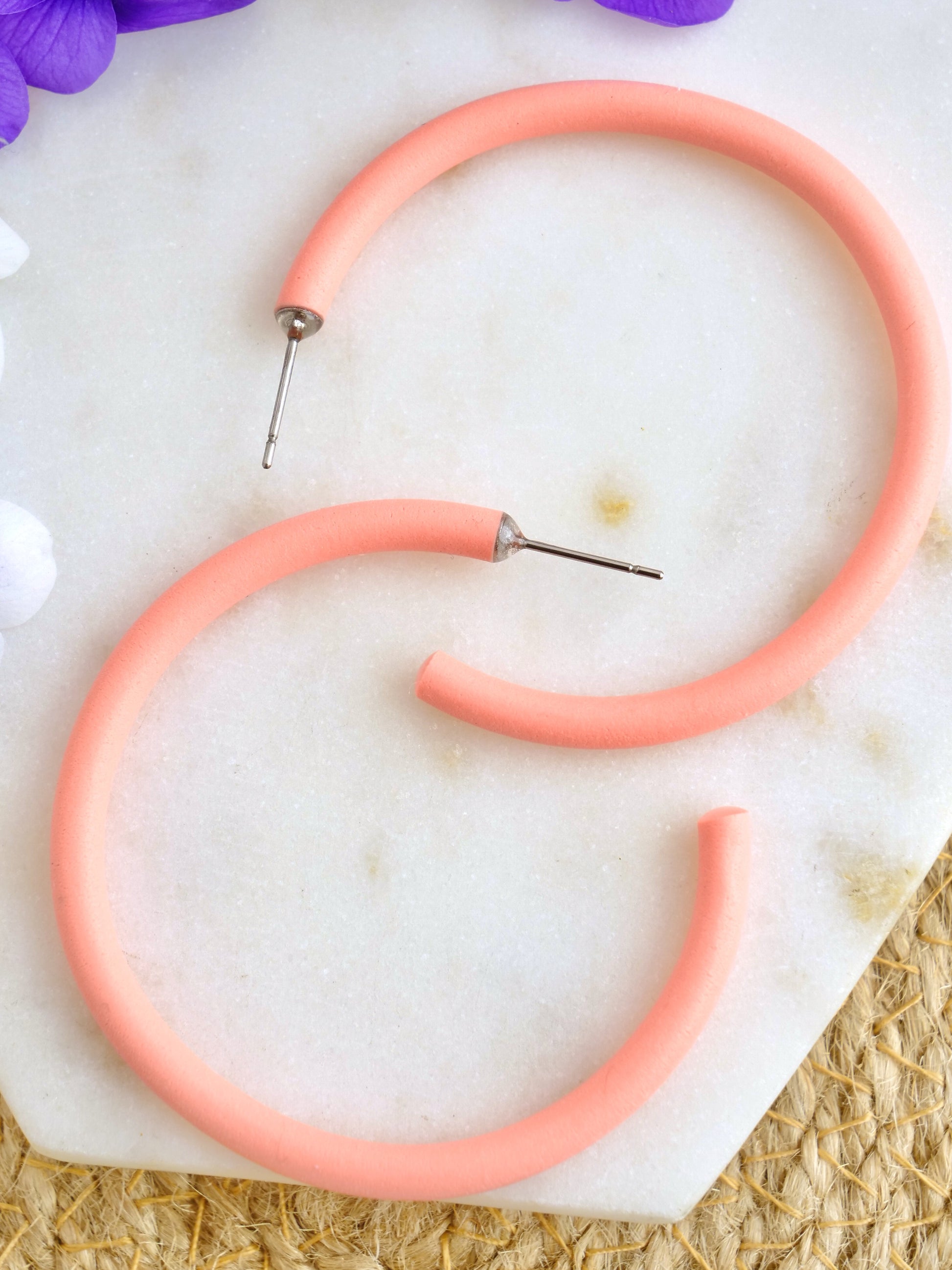 Unbelievably lightweight and durable clay hoop earrings created by hand in small batches.