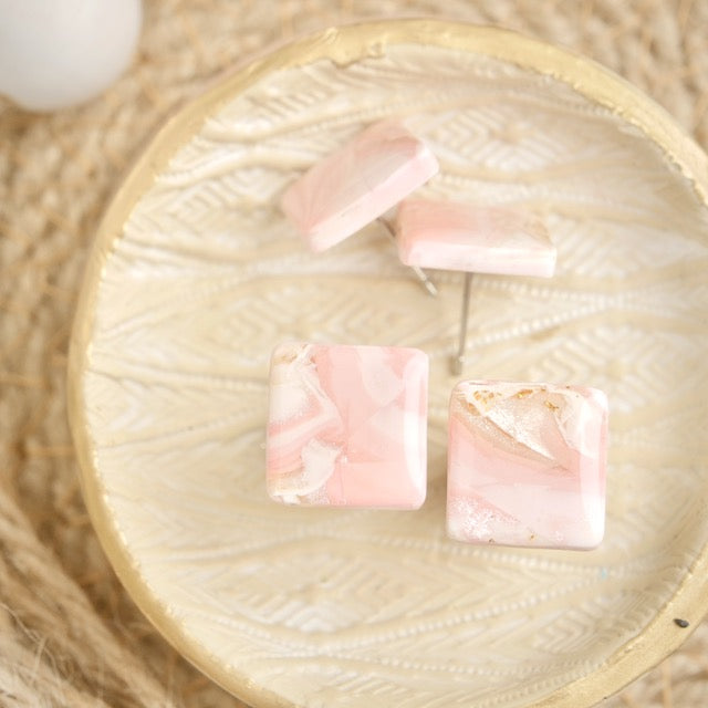 Lightweight and durable stud earrings created by hand in small batches. Made with polymer clay, plant-based resin and stainless steel posts.