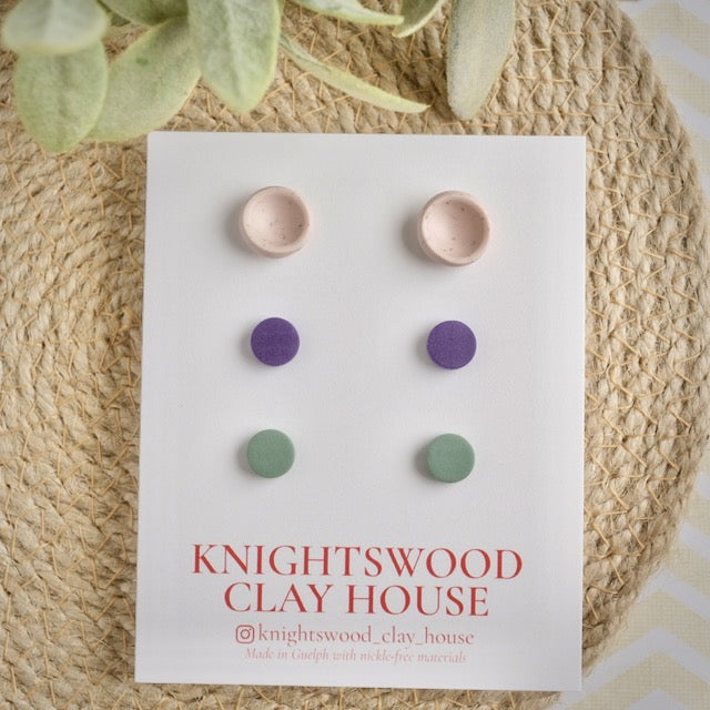 Stud 3 Pack with Light Pink Button Studs, Purple and Sage Micro Studs