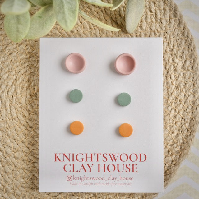 Stud 3 Pack with Rose Button Stud, Sage and Gold Micro Studs