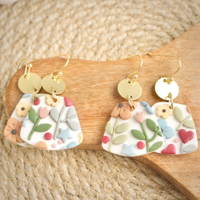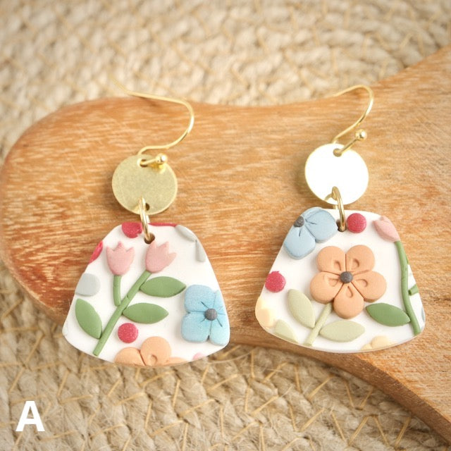 Lightweight and durable earrings created by hand in small batches. Made with polymer clay, brass and stainless steel.